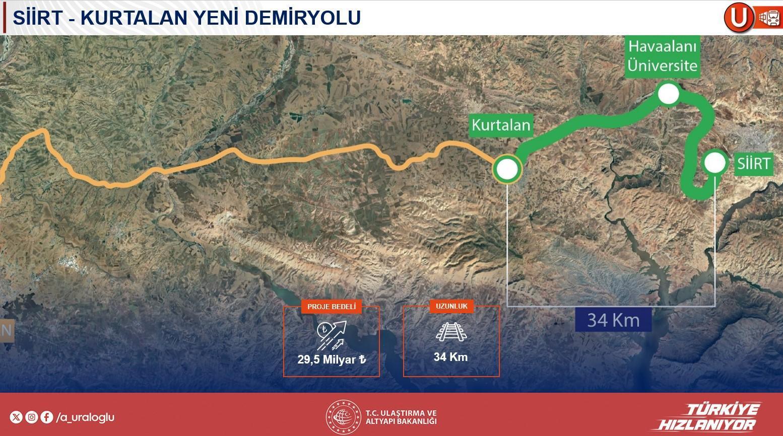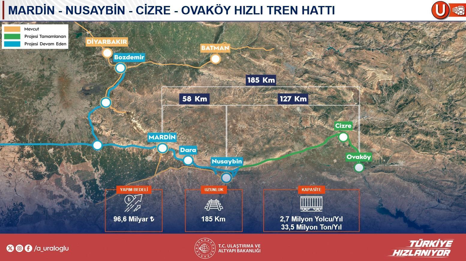 Orta Koridor’un bir başka modülü olan Sivas-Kars ortasındaki yaklaşık 660 kilometrelik sınırın rehabilite edileceğini açıklayan Uraloğlu, böylelikle kapasite sorunlarının giderileceğini belirtti. Ayrıyeten Nusaybin-Cizre-Ovaköy sınırının bu yıl ihale edileceğini ve Kurtalan-Siirt ortasındaki ihalenin ise dün gerçekleştirildiğini belirterek, “Bir vilayetimizi daha demir yoluyla buluşturmuş olacağız” dedi.