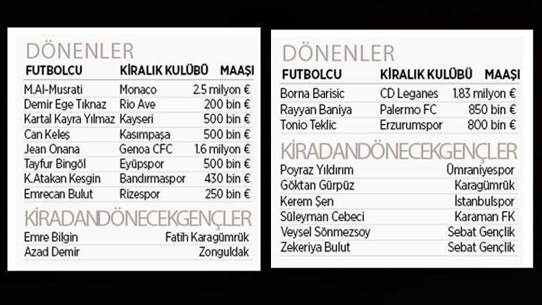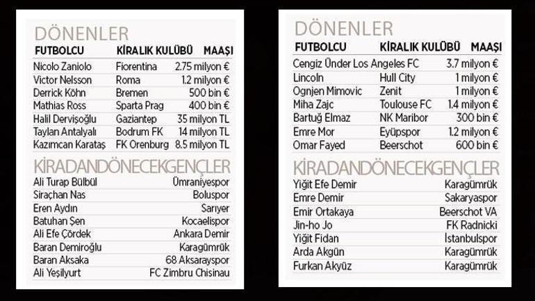 Kiradaki öteki yabancılardan Lincoln 1 milyon euro, Omar Fayed 600 bin euro alırken, bu dönem da hiç bahtları bulunmuyor. 2029’a kadar kontratı bulunan Kızılyıldız’a kiralanan Mimovic de dönmeye sıcak bakmıyor. Onun da yıllık 1 milyon euroluk bir maaş bütçesi bulunuyor. Kiralıkta bulunan Türk futbolculardan Emre Mor 1.2 milyon euro alırken, başka gençlerin maaş skalası epey altlarda bulunuyor.