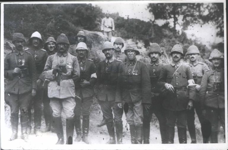 Anafartalar Kümesi Kumandanı Mîralay Mustafa Kemal Atatürk karargâh subayları ile birlikte