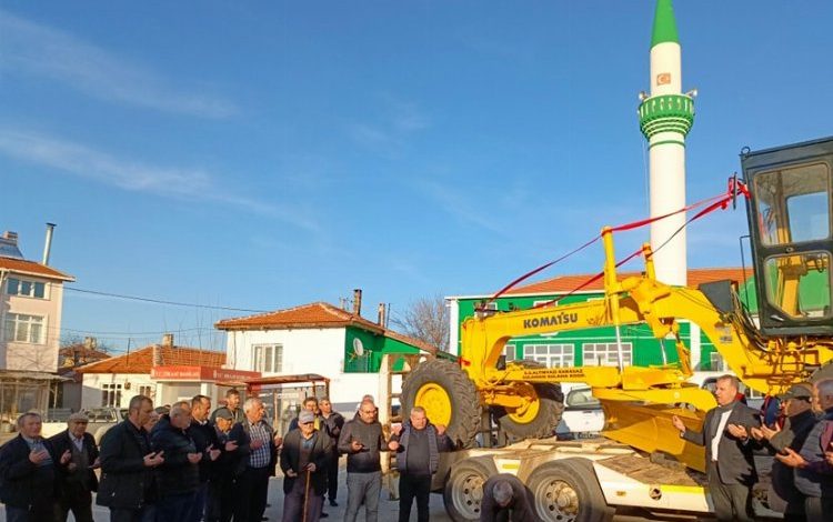 Alınan iş makinesi için köy meydanında Sultanköy Köy Camii imamı Fahrettin Turan tarafından okunan duanın ardından kurban kesildi ve dualar edildi.