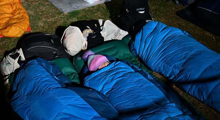 Çanakkale kent merkezinden gece saatlerinde Gelibolu Yarımadası’na geçen Avustralya ve Yeni Zelanda’dan gelen çok sayıda kişi, servis araçlarıyla Anzak Koyu’ndaki merasim alanına ulaştı. İştirakçiler, uyku tulumları ve battaniyeler içinde merasim alanına kurulan dev ekrandan Çanakkale Savaşları’na ait belgeseli izleyerek ayin saatini bekledi.