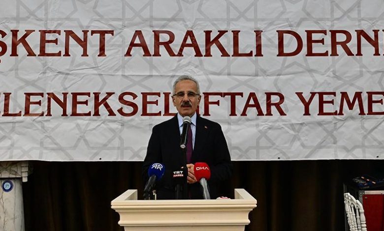Ulaştırma ve Altyapı Bakanı Abdulkadir Uraloğlu, Gazi Üniversitesi Kültür Merkezi’nde düzenlenen Araklı Derneği İftar Programına katıldı. Programda konuşan Bakan Uraloğlu, “Trabzon’umuz ülkemizin en yaşanabilir kentler kinayesinde 10’uncu sırada. Kâfi mi elbette değil, daha da üst çıkarmamız gerekiyor. Yaklaşık 1 milyar 350 milyon dolar ihracatıyla 2024 yılında ülkemizin en çok ihracat yapan 19’uncu ili. Doğu Karadeniz vilayetleri ortasında ise en fazla ihracat yapan vilayet. Tabiat ve yayla turizmi, kültür turizmi, sıhhat turizmi, kongre ve fuar turizmi üzere birçok turizm koluna hitap eden bir kent. 2023 yılına nazaran yüzde 2 artış oranıyla 2024 yılında 711 bin 626’sı yabancı ve 635 bini yerli olmak üzere yaklaşık 1 milyon 350 bin ziyaretçiye konut sahipliği yaptı. Turist sayısının bu yıl da artış göstererek 1.5 milyonu aşacağını düşünüyoruz” diye konuştu.