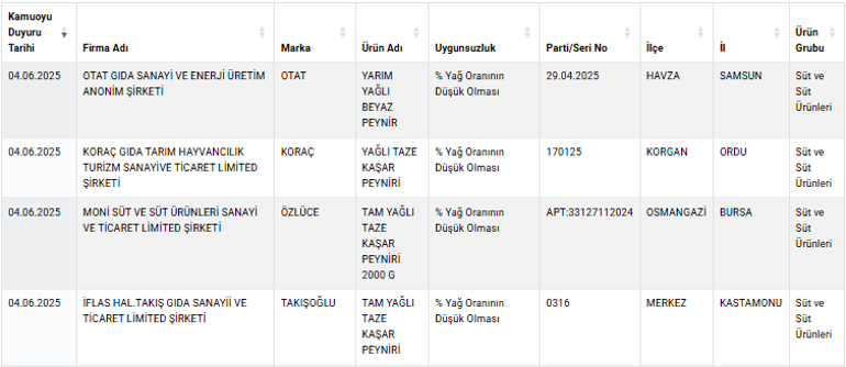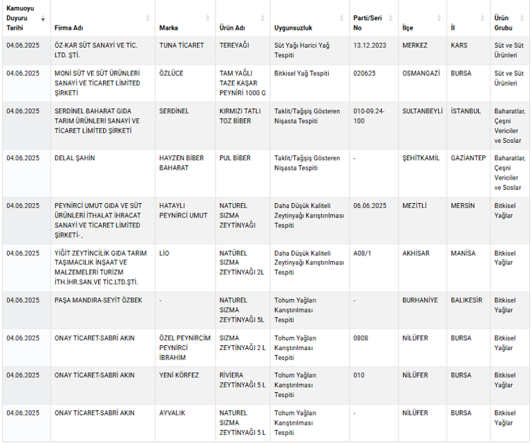 Milliyet.com.tr/ Vatandaşların sağlıklı besine erişmesi için Tarım ve Orman Bakanlığı yaptığı denetimler sonrası uygunsuz olan eserleri ifşa etmeye devam ediyor. Vakit zaman güncellenen ve yenileri eklenen uygunsuz eserler listesine yeni markalar ve eserler girdi.