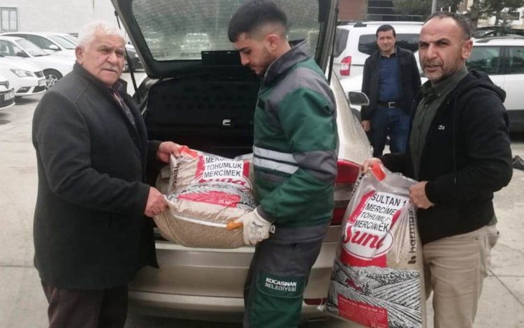 Kocasinan Belediyesi Tarımsal Hizmetler Müdürlüğü tarafından çiftçiye 6 ton beyaz sertifikalı yeşil mercimek tohumu dağıtıldı.