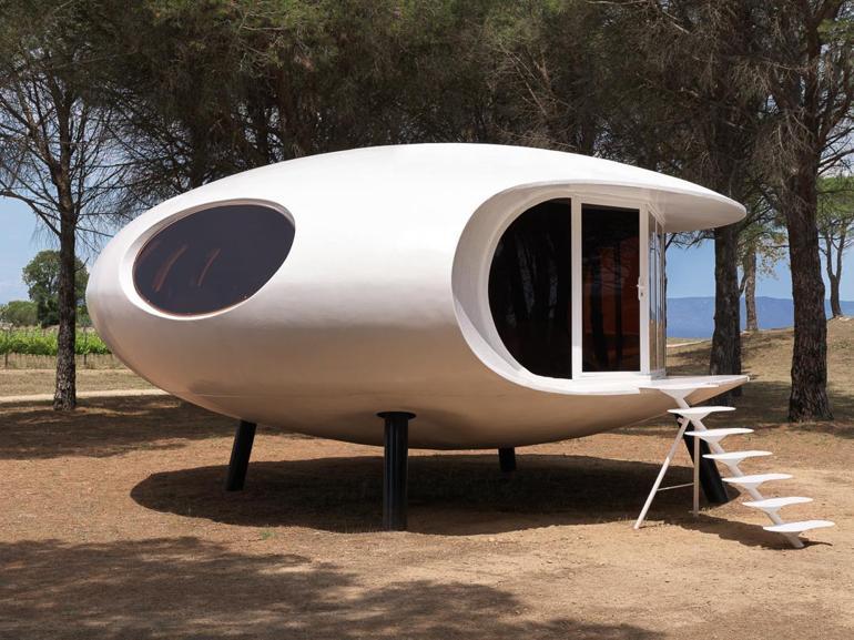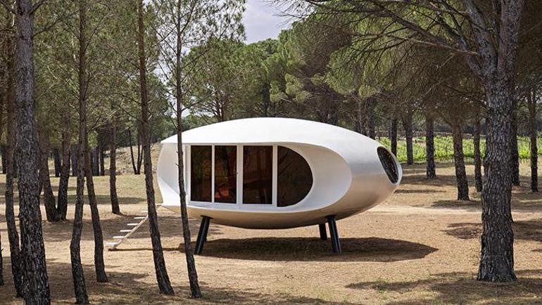 Bu tıp binalar, uzay gemisine benzeyen oval biçimleri nedeniyle halk ortasında “UFO konutları ” olarak bilinir. 45 metrekarelik mesken fiberglastan yapılmış ve ahşap bir yere sahip. Lakin bu konutu hakikaten özel kılan şey, büsbütün sökülebilmesi.