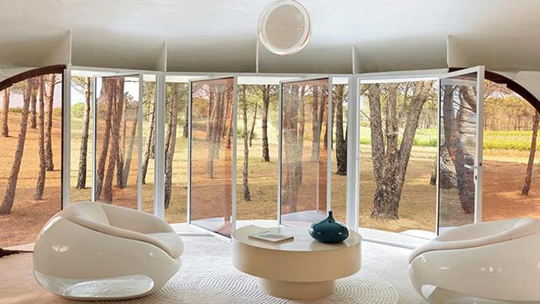Fiberglas gövdesi ve ahşap yer yapısıyla adeta bir uzay kapsülünü andıran bu konut, 1960’ların sonunda periyodun yenilikçi mimari anlayışını temsil ediyordu. “UFO evi” olarak anılmasının nedeni, yuvarlak çizgileri ve fütüristik formu. Yıllar boyunca gözlerden uzak kalan yapı, Fransız galerici Clément Cividino tarafından 2023 yılında restore edilerek İspanya’nın Girona bölgesinde sergilenmeye başlanmıştı. Cividino, yaptığı açıklamada, “Mimar Xasteros, 1973 ile 1978 yılları ortasında bu tipte sekiz mesken inşa etti. Bunlardan üçü Fransa’nın kuzeydoğusundaki bir kasabada, onarım bekliyor, öteki dördü ise kırılmış ve sökülmüş durumda. Sekizinci ise artık Hollywood aktörüne ilişkin. Xasteros konutu, yalnızca estetik açıdan bakıldığında plastikten yapılmış en hoş ev” diye konuştu.