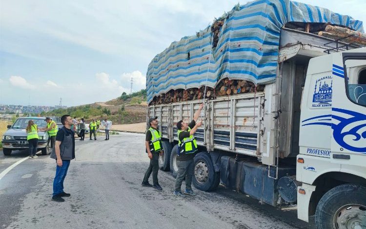 Bursa İnegöl’de orman ürünü taşıyan kamyonlara denetim