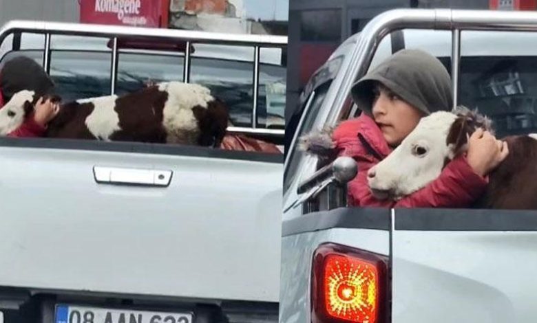 Buzağına kamyonetin kasasında sarılmıştı… Minik çobanın yürek ısıtan hikayesi