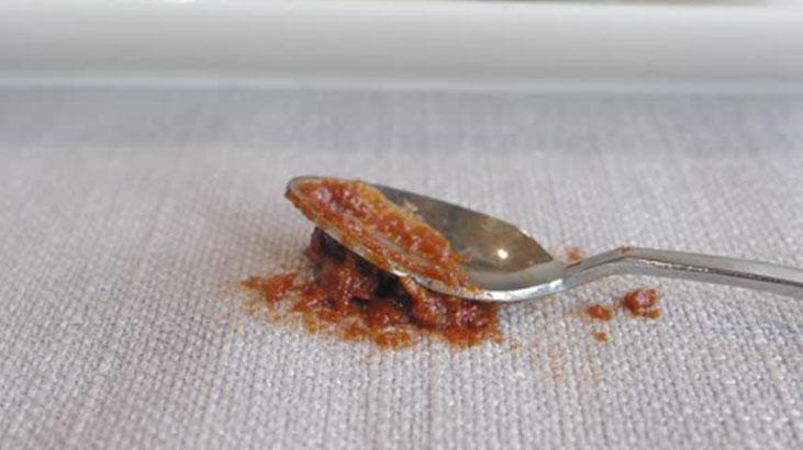 Koltuk kumaşları başka kumaşlara kıyasla daha hassas olabilir. Kağıt havlu yahut pak bir bezle domatesin fazlasını yeterlice alın. Akabinde suya birkaç damla sıvı bulaşık deterjanı ekleyin ve pak bir bezle lekeyi silin. Şayet leke çıkmazsa, biraz beyaz sirke ekleyerek deneyin.