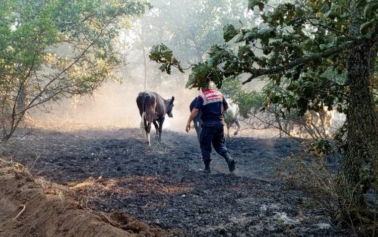Edirne İl Jandarma Komutanlığı’ndan yapılan açıklamada, “Lalapaşa ilçemizde meydana gelen yangında, yangının ortasında kalan hayvanlarımızın kurtarılması için ekiplerimiz seferber oldu. Hayvanlarımızın sağlıklı bir şekilde kurtarılıp hayvan sahiplerine teslim edilmesi için gerekli tüm çalışmalar yapıldı” denildi.