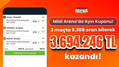Misli Arena’da Ayın Kuponu! 3 maçta 9.208 oran bildi, 3.694.246 TL kazandı!