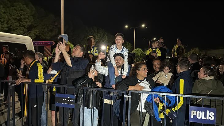 İstanbul’dan uçakla kente gelen sarı-lacivertli kafileyi, taraftarlar tezahürat ve meşalelerle karşıladı.