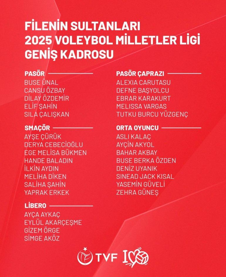 Filenin Sultanları, Voleybol Milletler Ligi; Birinci haftasında 4-8 Haziran 2025 tarihleri ortasında Çin’de, İkinci haftasında 18-22 Haziran 2025 tarihleri ortasında İstanbul’da, Üçüncü haftasında da 9-13 Temmuz 2025 tarihleri ortasında Hollanda’da uğraş edecek.