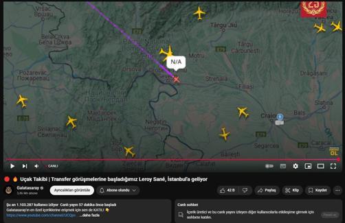 Galatasaray’ın YouTube kanalında yaptığı uçak takip yayınını anlık olarak 1 milyondan fazla izleyici takip etti.