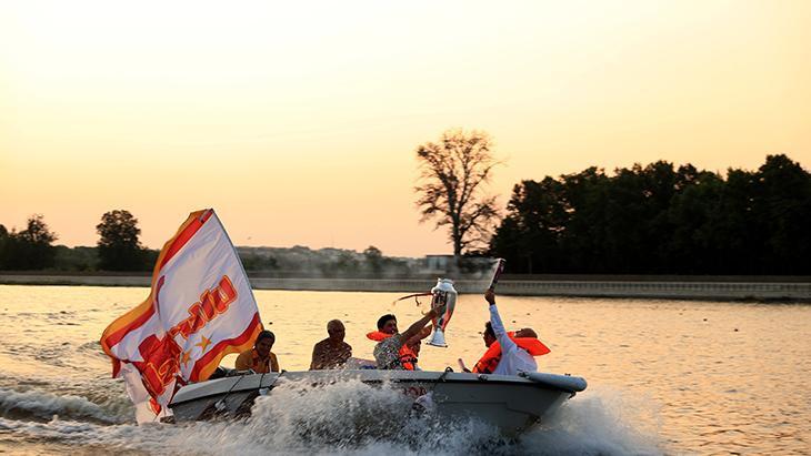 Trendyol Süper Lig şampiyonu Galatasaray, Edirne’de Meriç Irmağı üzerinde kutlama yaptı.