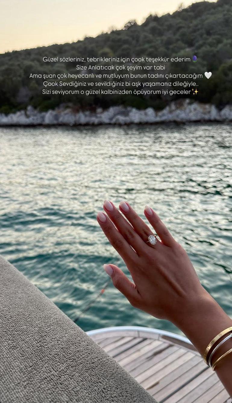 Ünlü çift memnun anlarını toplumsal medya hesaplarından paylaşırken Asena Atalar, evlilik teklifi sonrası çekilen fotoğrafına ‘İçim içime sığmıyor’ yazarak sevenlerine memnunluğunu tabir etti.