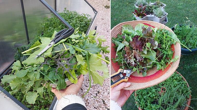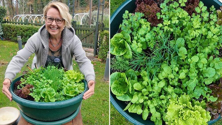 Evde tek bir saksıda farklı çeşitlerde salata gereçleri yetiştiren Nevra, “Doğada bitki örtüsü bir ahenk içinde bulunuyor. Her şey taban tabana birbirlerine takviye vererek, ahenk içinde yaşıyor. Tabiatta monokültür yok, çeşitlilik var. Benim üslubumda da çeşitlilik ve sık dikim bulunuyor. Toprağım varlıklı ve sık dikime uygun. İnsanların İstanbul’da esasen dar alanları var. Ben de dar alanda en çok ne yetiştirebilirim onun peşindeyim. Bir leğen de buna bir örnek. 40 litrelik bir leğende 20’ye yakın bitki yetiştirdim. İnsanların da çok güzeline gitti. İsmini da salata saksısı koydum” diyerek anlatıyor leğendeki salata saksının ortaya çıkış öyküsünü.
