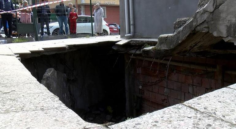 İstanbul’da kaygı dolu anlar! 4 katlı binanın yeri çöktü