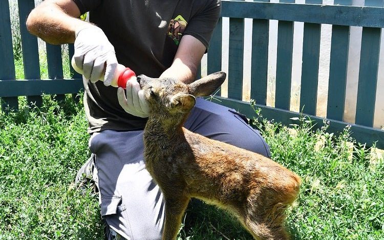 İzmir Doğal Yaşam Parkı’nın misafiri biberonla besleniyor