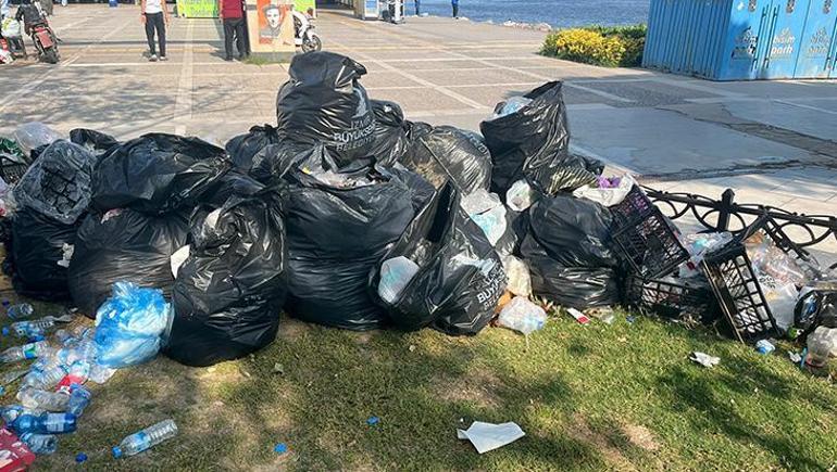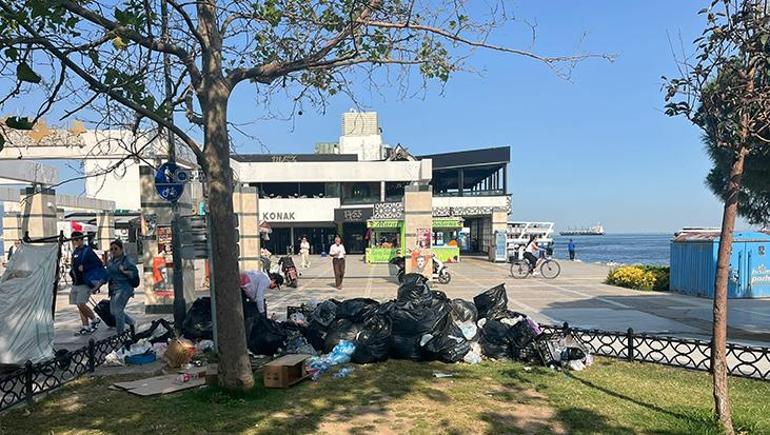 İZMİR’DE GREVİN 6’NCI GÜNÜNDE KONAK’TA ÇÖPLER BİRİKTİ