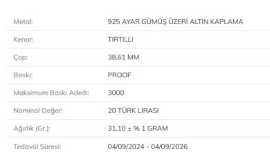 – Darphane ve Damga Matbaası Genel Müdürlüğü’nden yapılan duyuruda, üzeri altın kaplama hatıra paranın 4 Eylül Çarşamba günü saat 11.00’de…