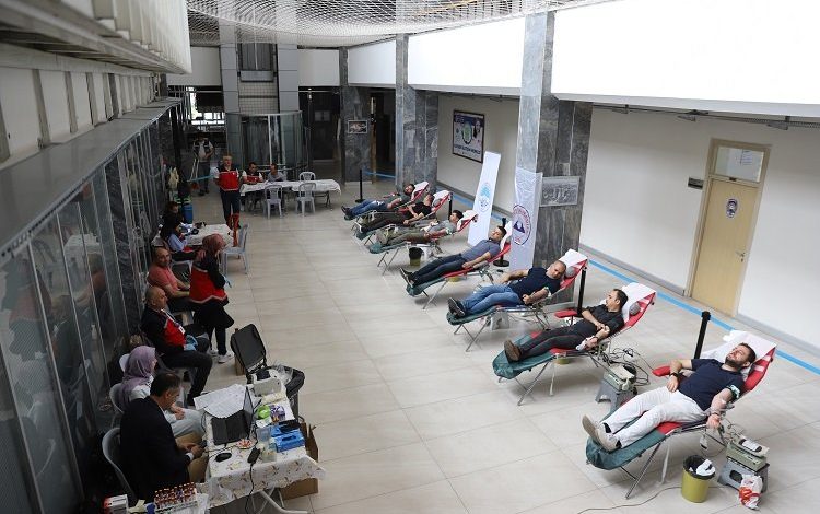 Gönüllü kan bağışı kampanyası kapsamında personel, kurulan kan bağışı stantlarında bağışta bulunarak kampanyaya sahip çıktılar.