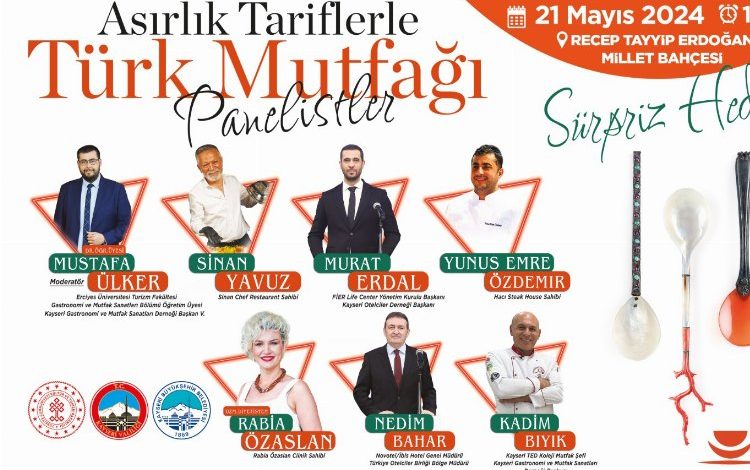 Bu kapsamda, binlerce yılı aşan kültür, gelenek, toplumsal miras ve köklü bir tecrübenin birikimi ve mirası olan zengin Türk Mutfağı, 21-27 Mayıs tarihleri arasında yeniden bereketli sofrasının eşsiz serüvenini ve lezzetini dünya ile paylaşırken, Kültür ve Turizm Bakanlığı, Kayseri Valiliği ve Büyükşehir Belediyesi bu özel hafta dolayısıyla ‘Asırlık Tariflerle Türk Mutfağı’ Paneli düzenliyor.