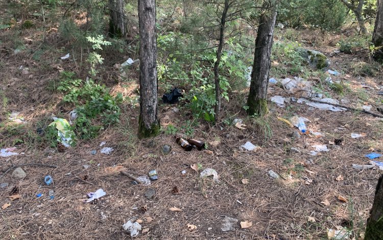 Alkol kullanıcıları tarafından yolun kenarında veya ormanın içinden içilen içkilerin şişeleri, kullanıcılar tarafından ormanın içine atılıyor.