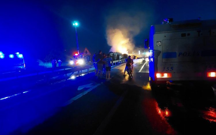 Yangında, TIR’ın sürücüsü Ergül K. hafif yaralanırken, TIR’da ve kasasında maddi hasar meydana geldi.