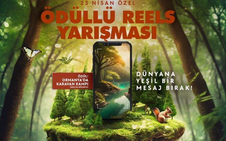 Kocaeli Büyükşehir Belediyesi’nin 23 Nisan Ulusal Egemenlik ve Çocuk Bayramı kapsamında çevre duyarlılığına yönelik açtığı Reels Yarışması’nın başvuru süresi 18 Nisan Perşembe gününe kadar uzatıldı. “Ormanın Sesi-Dünyaya Yeşil Bir Mesaj” sloganının kullanılacağı yarışma çocuklarda doğa bilinci ve doğal yaşam farkındalığını arttırmayı amaçlıyor. Videoları dereceye girecek olan çocuklar, aileleri ile birlikte Ormanya’da 2 gece karavan kampı yapacak.