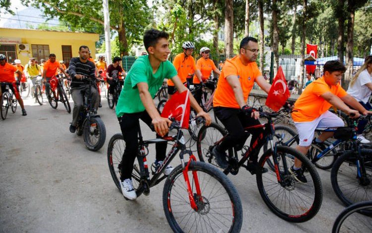 ANTALYA (İGFA) – Antalyalıların spora teşvik edilmesi, şehir trafiğinin azalması ve otomobillerin doğaya verdiği zararın azaltılması amacıyla, Antalya Büyükşehir Belediyesi tarafından “Köyüm Bisiklete Biniyor” etkinliği düzenlendi. Spora verdiği önemi, şehirde düzenlediği etkinliklerle gösteren Antalya Büyükşehir Belediyesi, kırsal bölgelerdeki vatandaşları da spora teşvik ediyor. Büyükşehir Belediyesi ve Antalya Kent Konseyi işbirliğiyle “Köyüm Bisiklete Biniyor” etkinliği düzenlendi. Konyaaltı ilçesi Çakırlar Kapalı Pazar Yeri’nden bisikletleriyle start alan Çakırlar sakinleri, 11 kilometrelik bir rotanın sonunda Gökçam İlkokulu önünde sürüşlerini noktaladı.