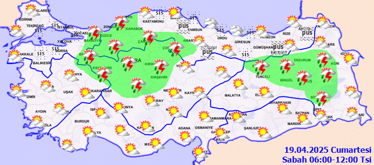 Meteoroloji Genel Müdürlüğünden alınan kestirimlere nazaran yağışların; Ankara’nın kuzey ve doğusu, Çankırı, Bolu’nun doğusu, Karabük, Kastamonu, Çorum, Amasya, Tokat, Gümüşhane, Bayburt ve Erzurum etrafları ile Samsun ve Ordu’nun iç kısımlarında mahallî kuvvetli olması bekleniyor. Sabah ve gece saatlerinde Marmara ve Karadeniz etraflarında sis ve pus hadisesi bekleniyor. Rüzgarın, öğlen saatlerinde İç Anadolu’nun güney kısımlarında güney taraflardan (30-50 kilometre/saat) kuvvetli esmesi varsayım ediliyor.