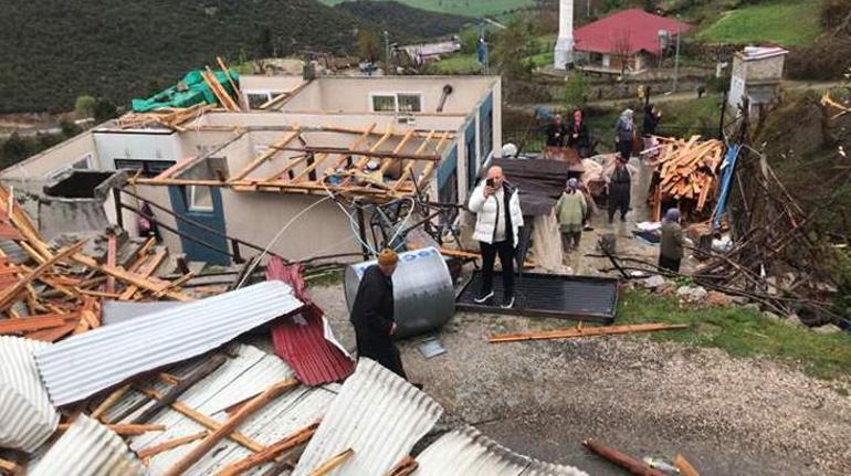 Boğazören Mahallesi Senir mevkisinde fırtına nedeniyle 3 konutun çatısı uçtu, çok sayıda ağaç devrildi.