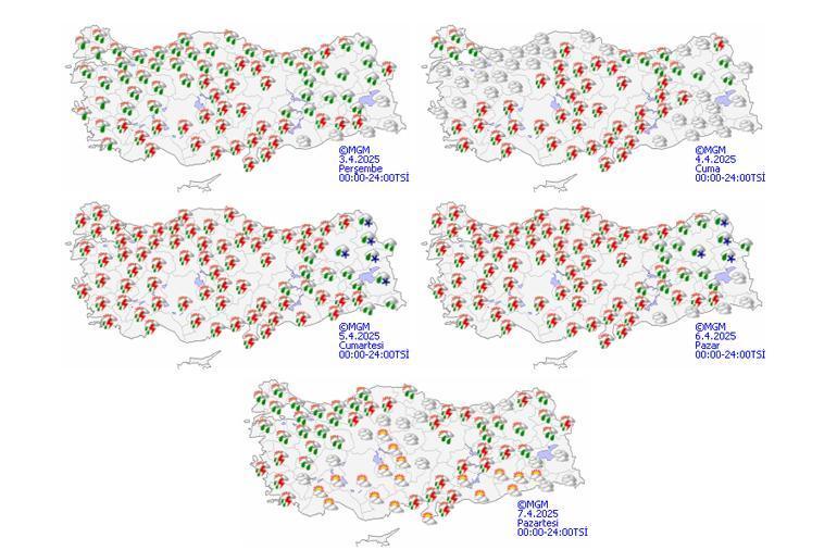 Parçalı ve çok bulutlu, aralıklı yağmur ve sağanak, yer yer gök gürültülü sağanak yağışlı geçeceği iddia ediliyor.
