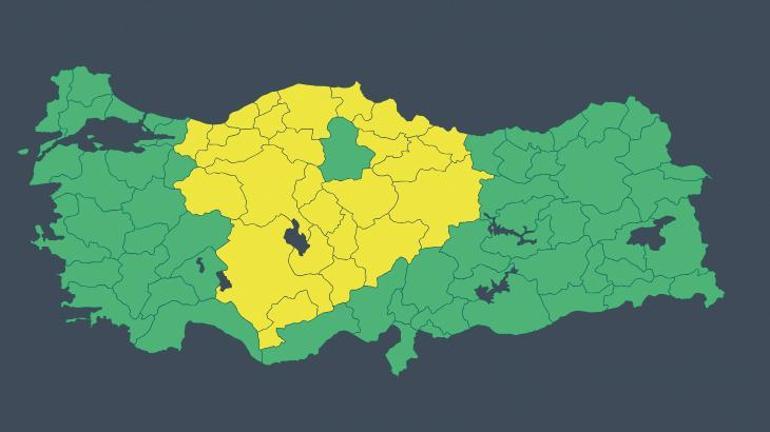Çankırı, Eskişehir, Kayseri, Kırşehir, Konya, Niğde, Sinop, Sivas, Yozgat, Aksaray, Kırıkkale, Karaman, Nevşehir için sarı kodlu rüzgar uyarısı