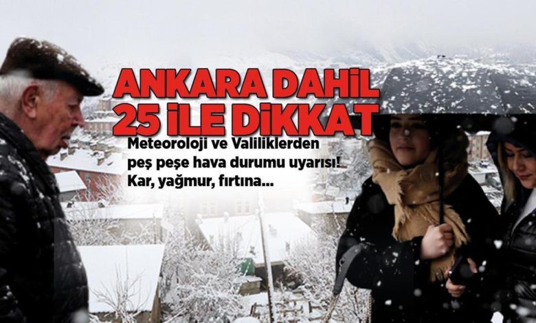 Meteoroloji ve Valiliklerden peş peşe hava durumu uyarısı! Kar, yağmur, fırtına: Ankara dahil 25 ile dikkat