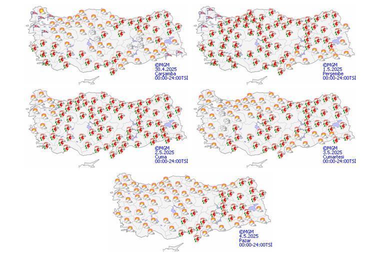 Parçalı ve çok bulutlu, (Hatay dışında) bölge genelinin lokal sağanak ve gök gürültülü sağanak yağışlı geçeceği iddia ediliyor.