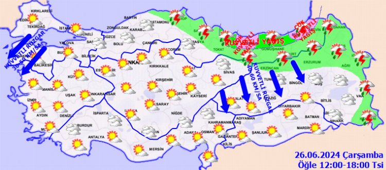 Meteoroloji Genel Müdürlüğü 26 Haziran 2024 Çarşamba gününe yönelik hava tahmin raporunu yayımladı.