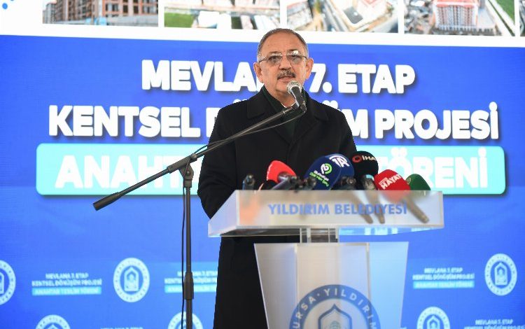 Çevre Şehircilik ve İklim Değişikliği Bakanı Mehmet Özhaseki, “Ülkemizi depreme dirençli hale getirme yolunda bir adım daha atıyoruz. Yıldırım ilçemizde Yavuzselim, Arabayatağı, Ulus, Çınarönü, Hacivat ve Şirinevler Mahallelerimizi ihata eden 499 hektarlık alandaki 8 etaplık kentsel dönüşüm projemizde bir safha daha tamamlandı. İlk uygulama alanı olan 7. Etap’ta 644’ü konut, 177’si dükkân olmak üzere toplam 821 bağımsız bölüm TOKİ Başkanlığımızca inşa edildi. Bugün, bunlar içerisindeki 154 dairenin anahtarlarını, hak sahiplerine teslim ediyoruz. Diğer konutları, 8. etabın dönüşümünde kullanacağız. Durmadan, dinlenmeden çalışıyoruz. Bir yandan deprem bölgemizi ihya ediyoruz. Bir yandan da işte burada, Yıldırım’da olduğu gibi riskli yapıları dönüştürüyor, ülkemizi depreme hazır hale getiriyoruz. Allah’ın izniyle en kısa sürede bu hedefe de ulaşacağız. Hedefimiz, bir günlük, iki günlük bir hedef değil. Yüz yıllık, bin yıllık bir hedef. Bütün vatandaşlarımızı, evlerinin deprem performanslarını ölçtürmeye davet ediyorum. Gelin, hep birlikte ülkemizin kentsel dönüşümünü tamamlayalım. Ülkemizi deprem tehlikesine hazırlayalım. Marmara Depremi’nin, 6 Şubat Depremleri’nin acısını bir daha yaşamayalım. Bunu önlemek mümkün. Unutmayın, deprem değil; riskli bina can alır. Konutlarımızın vatandaşlarımıza, Bursa’mıza hayırlar getirmesini temenni ediyorum. Alinur ve Oktay Başkanımızın kentsel dönüşüm hedeflerinde Bakanlık olarak üzerimize ne düşüyorsa gerekli desteği vereceğiz” dedi.