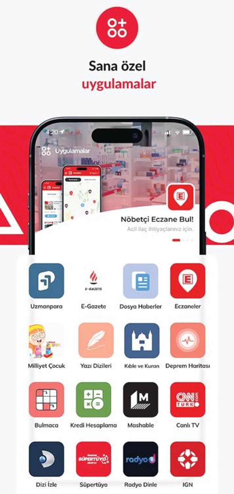 9 günlük bayram tatili ile ilgili son dakika gelişmeleri, bayramda hava durumu, bayram namazı saatlerini de rahatlıkla bulabilirsiniz. Üstün App ismini verdiğimiz bu kullanıcı odaklı uygulamada nöbetçi eczaneleri görüntüleyebilir, yol tanımı alabilirsiniz. Kur’an & Kıble pusulası uygulamasıyla namaz vakitlerini ve kıble istikametini kolaylıkla öğrenebilir, Milliyet Çocuk sayfasından çocuklar için hazırlanmış özel içeriklere ulaşabilirsiniz. Türk basınının hafızası olan Milliyet’in yazı dizilerini okuyabilir, UzmanPara ile borsa ve piyasanın anlık bilgilerini takip edebilirsiniz. Bunun yanı sıra canlı TV ve dizi izleme seçeneklerinden zelzele haritasına kadar pek çok yeni özelliğe erişim sağlayabilirsiniz. Gereksinimleriniz için farklı uygulamalar ortasında kaybolmaktan sıkıldıysanız Milliyet Üstün App’i denemelisiniz.