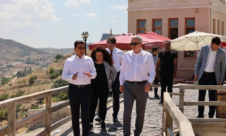 Belediye Başkanı Rasim Arı, başkanlık makamındaki ziyaretin ardından Büyükelçi Dmitri Croitor ve beraberindeki heyete, Nevşehir Belediyesi tarafından turizme kazandırılan Kayaşehir ve VR Merkezi ile Meryem Ana Kilisesi’ni gezdirdi.