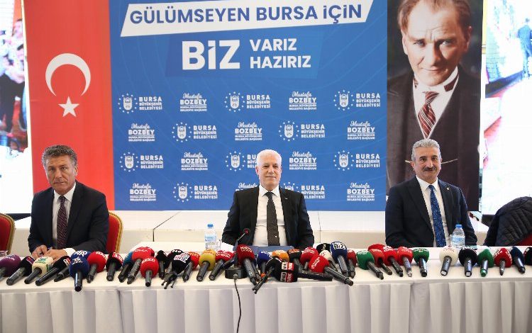 Bozbey’in ilk basın toplantısına resmen basın ordusu takip etti. 43 mikrofon, yaklaşık 250 basın mensubunu katılımıyla gerçekleşen basın toplantısında CHP İl Başkanı Nihat Yeşiltaş ile CHP Bursa Milletvekili Orhan Sarıbal, Genel Sekreter Yardımcısı Mehmet Yıldız, belediyelerden sorumlu genel koordinatör Mehmet Uğur Sertaslan, Gemlik Belediye Başkanı Şükrü Deviren de hazır bulundu.