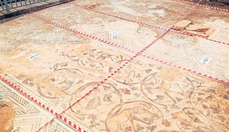 2009’da ortaya çıkarılan bazilikaya ilişkin mozaik, hem büyüklüğü hem de sanatsal işçiliğiyle dikkati çekiyor. Yapıtta üç boyutlu küp desenleri, geometrik haller ve devrin inanç dünyasına ilişkin figürler yer alıyor.