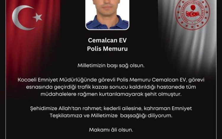 Kocaeli Üniversitesi Eğitim ve Araştırma Hastanesi’ne kaldırılan polis memuru Cemalcan Ev, yapılan tüm müdahalelere rağmen kurtarılamayarak şehit oldu.