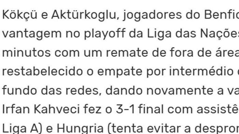 A Ulusal Kadro, UEFA Uluslar Ligi Play-Off birinci maçında dün akşam İstanbul’da Macaristan’ı 3-1 devirerek A Ligi için avantajı yaptı. Uğraşın akabinde Kerem Aktürkoğlu ve Orkun Kökçü’nün performansı, Portekiz basınında da yankı buldu.