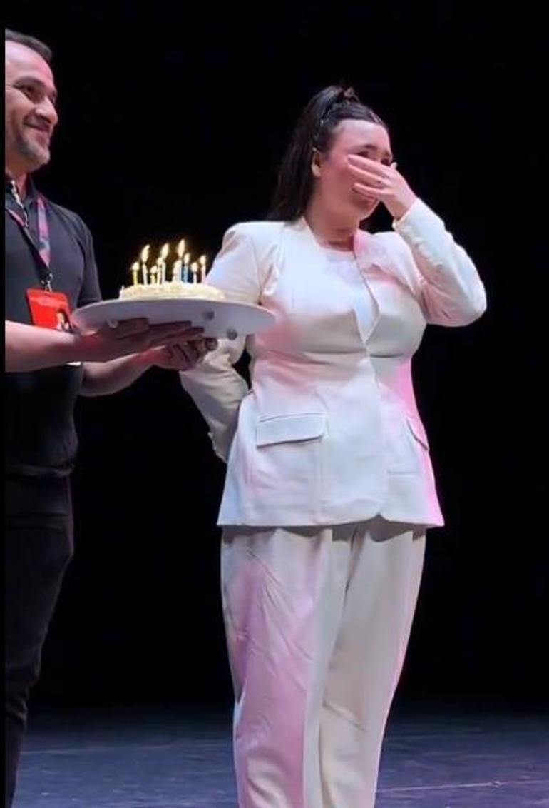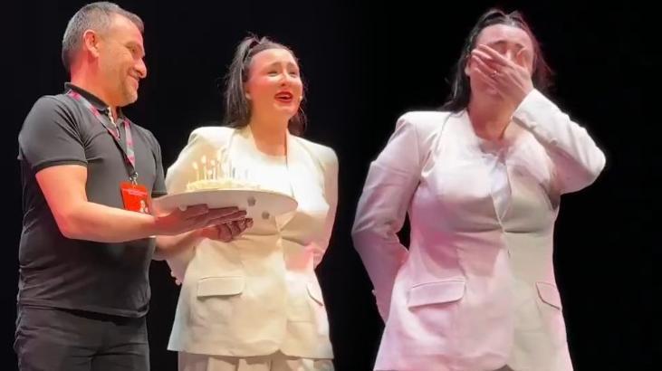 Sahnede duygusal anlar! Sürpriz doğum günü ağlattı