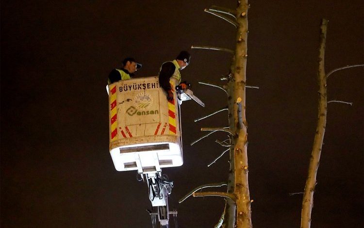Büyükşehir Belediyesi, vatandaşın güvenliğini sağlamak ve estetik görünüme katkı sunmak için şehrin sembol caddeleri ve parklarında yoğun bir budama çalışması yürütüyor.