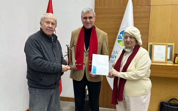 TÜMFİBED (Tüm Bürokratlar ve İş İnsaları Federasyonu) Tarım Bilimleri Komisyon Başkanı Prof. Dr. Engin Özhatay ve eşi Başkan Yardımcısı Prof. Dr. Neriman Özhatay, Büyükşehir Belediye Başkanı Ekrem Yüce’yi makamında ziyaret etti. TÜMFİBED yönetimi Başkan Yüce’ye ulusal düzeyde bir ödül olan Tarım Bilimleri Ödülü’nü takdim etti.
