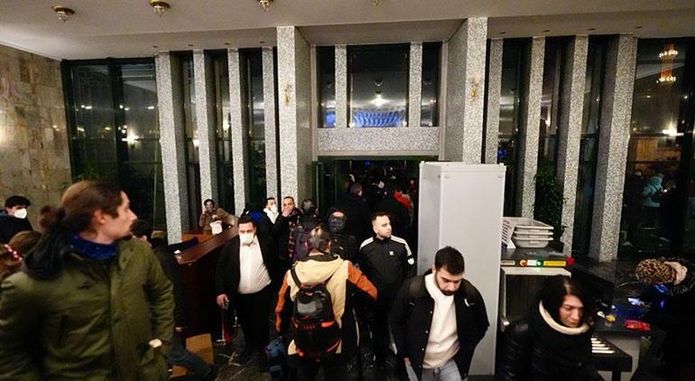 Müdahaleden kaçmaya çalışan göstericiler, İBB binasına yöneldi. Binanın önündeki güvenlik bariyerlerini aşarak kapıyı zorlayan küme, açılmaması üzerine camları kırarak içeriye girdi.
