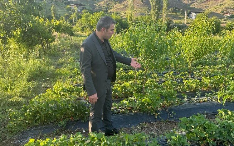 Sason Belediye Başkanı Demir, dolu yağışının vurduğu Çilek tarlalarını gezdi